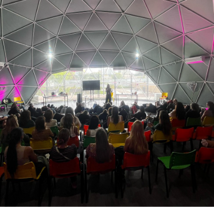 Carmen Burone y su equipo formaron parte de Womanada con un domo espiritual: un espacio para descubrir, reflexionar y conectar con tu esencia. Constelaciones familiares, rebirthing, sound healing y más prácticas transformadoras.